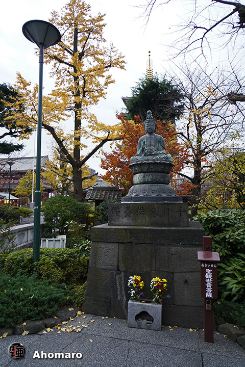 正岡子規句碑「観音で 雨に逢ひけり 花盛」
