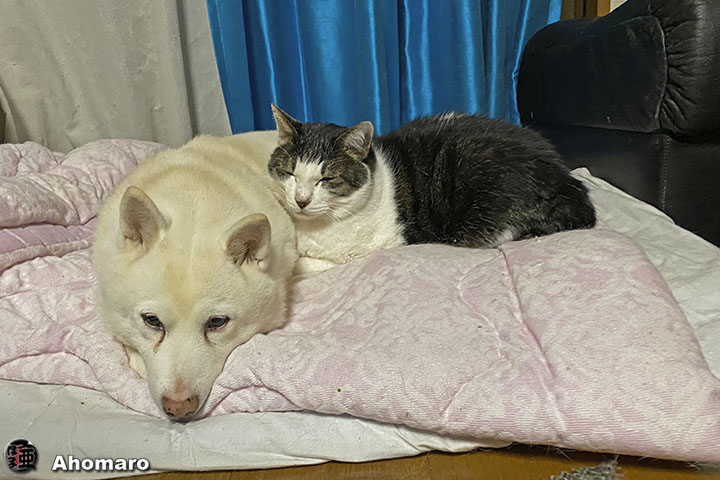ヤマト君の晩酌。阪神淡路大震災から25年目、ヤマト君も黙祷するのだ。