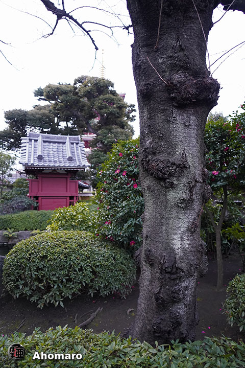 正岡子規句碑「観音で 雨に逢ひけり 花盛」