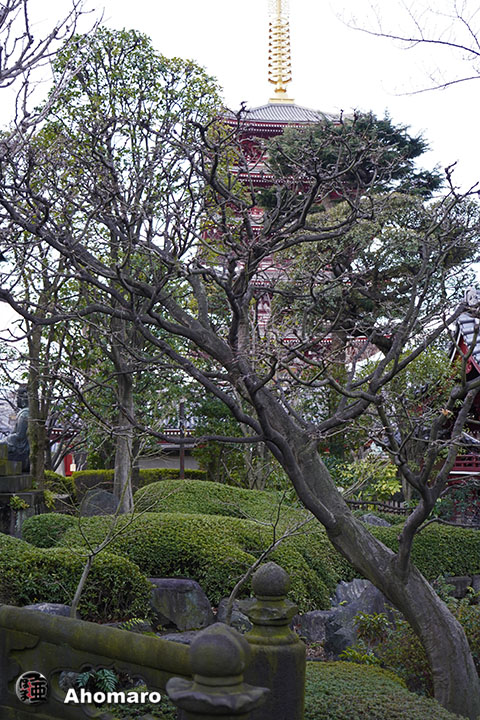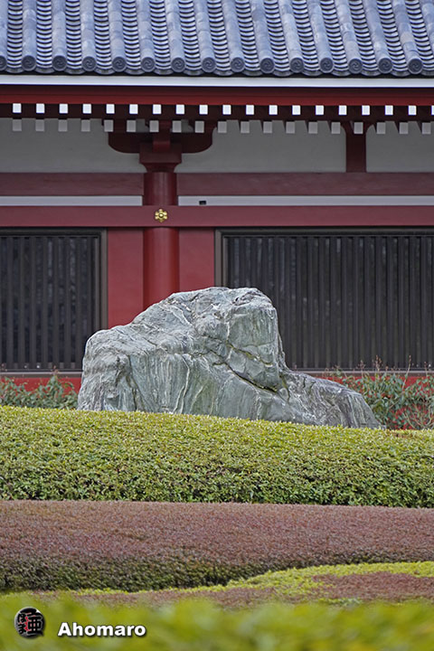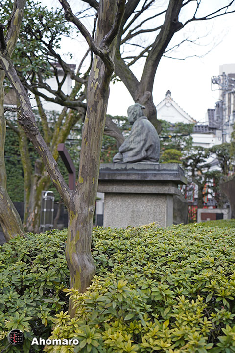 正岡子規句碑「観音で雨に逢ひけり花盛」
