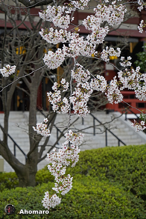 正岡子規句碑「観音で雨に逢ひけり花盛」