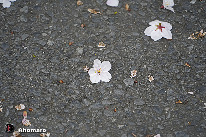 おや、ここだけいっぱい花が落ちてますね。