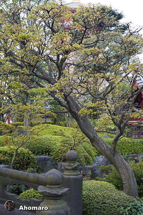 正岡子規句碑「観音で雨に逢ひけり花盛」