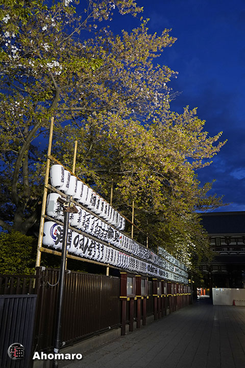 誰も居ない雷門前は、まるで早朝の写真のようですね。