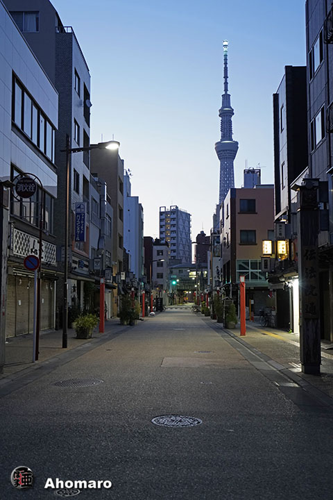 誰も居ない商店街。