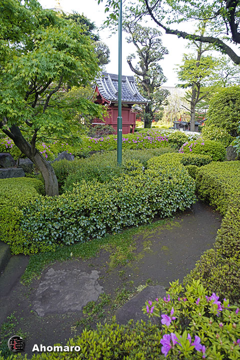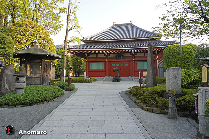 正岡子規句碑「観音で雨に逢ひけり花盛」