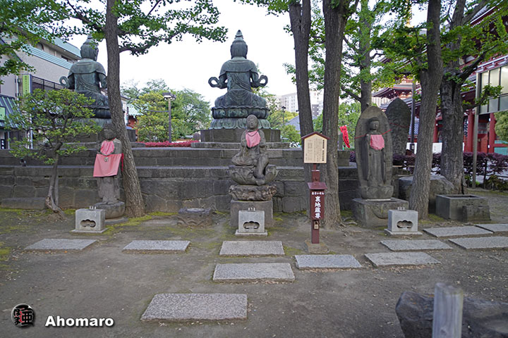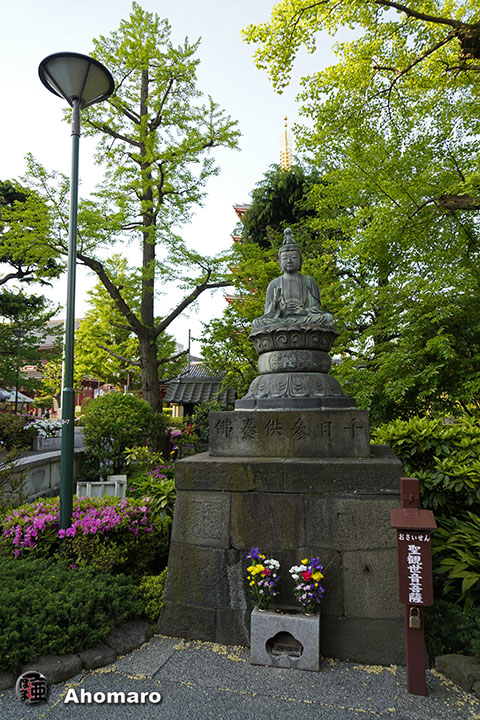 正岡子規句碑「観音で雨に逢ひけり花盛」