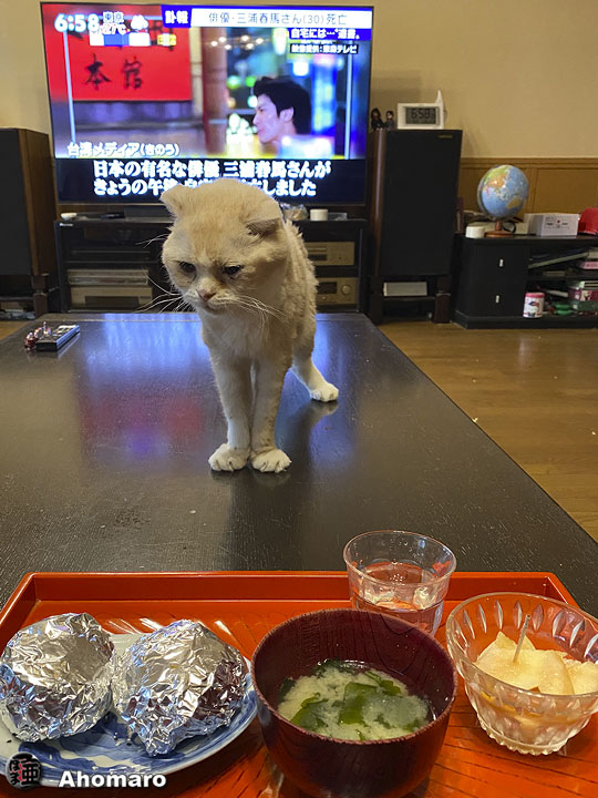 なんだこれ?おむすびを銀紙で巻いたらチン出来ないってこと知ってるのか、ニャロメ。