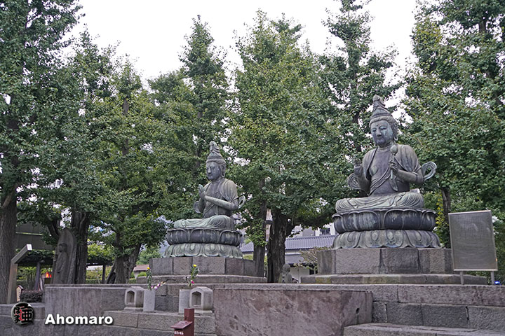 正岡子規句碑「観音で雨に逢ひけり花盛」