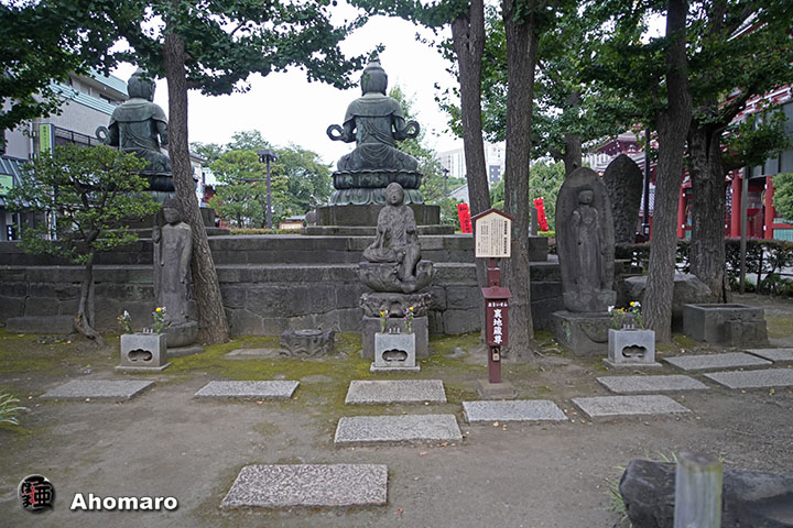 正岡子規句碑「観音で雨に逢ひけり花盛」