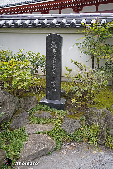 正岡子規句碑「観音で雨に逢ひけり花盛」