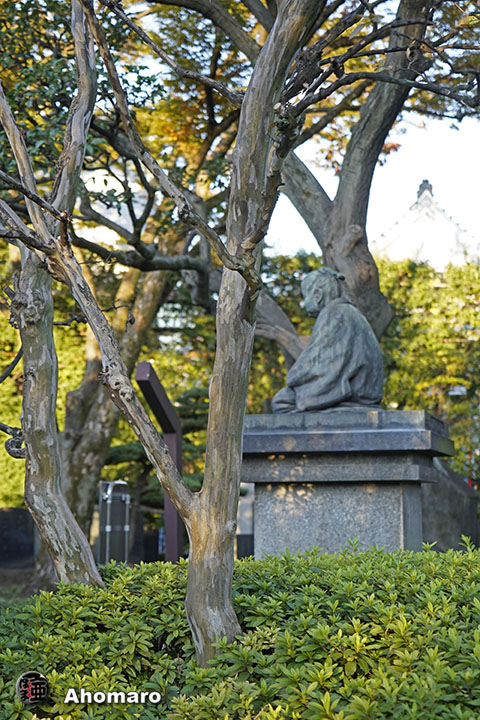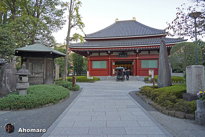 正岡子規句碑「観音で雨に逢ひけり花盛」