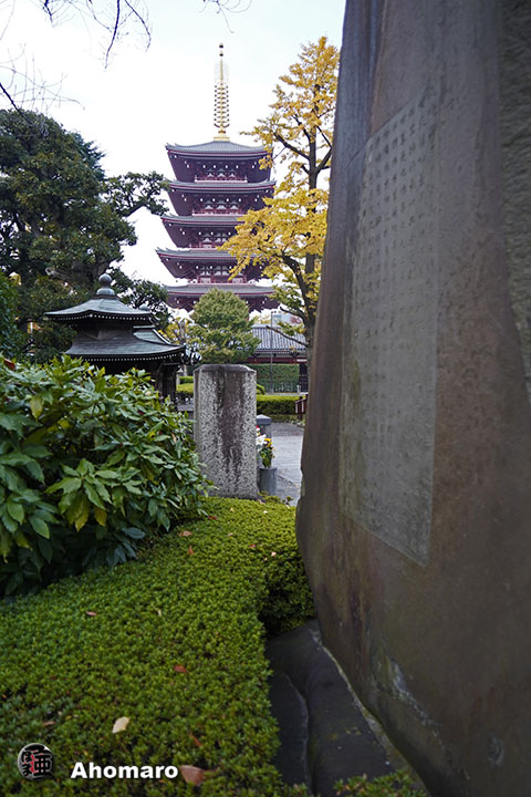 正岡子規句碑「観音で雨に逢ひけり花盛」