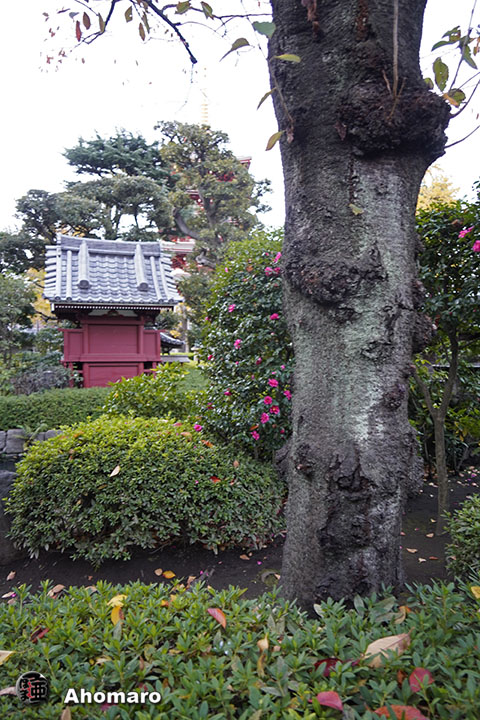 正岡子規句碑「観音で雨に逢ひけり花盛」