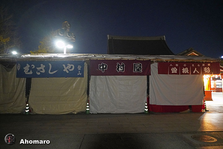 羽子板市の屋台は、宝蔵門の前後にこじんまりと纏められました。