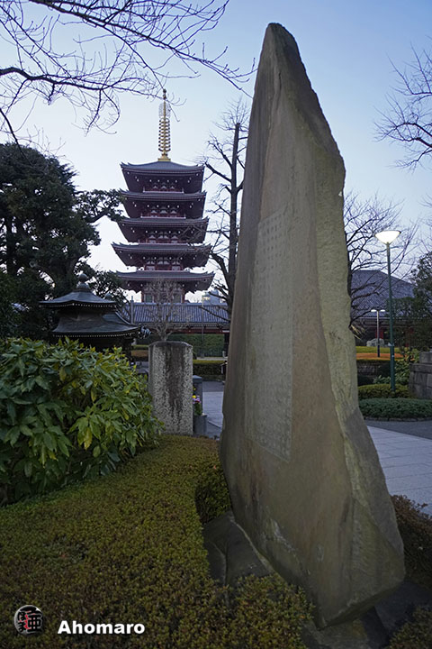 正岡子規句碑「観音で雨に逢ひけり花盛」
