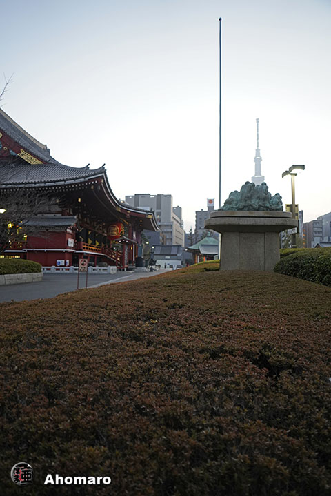 今朝の日の出:午前6時50分。雷門前:5時00分。