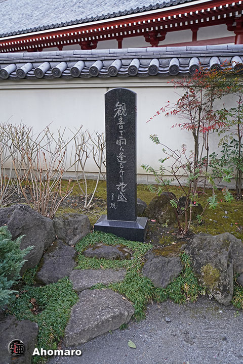 正岡子規句碑「観音で雨に逢ひけり花盛」