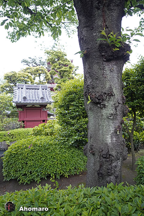 正岡子規句碑「観音で雨に逢ひけり花盛」