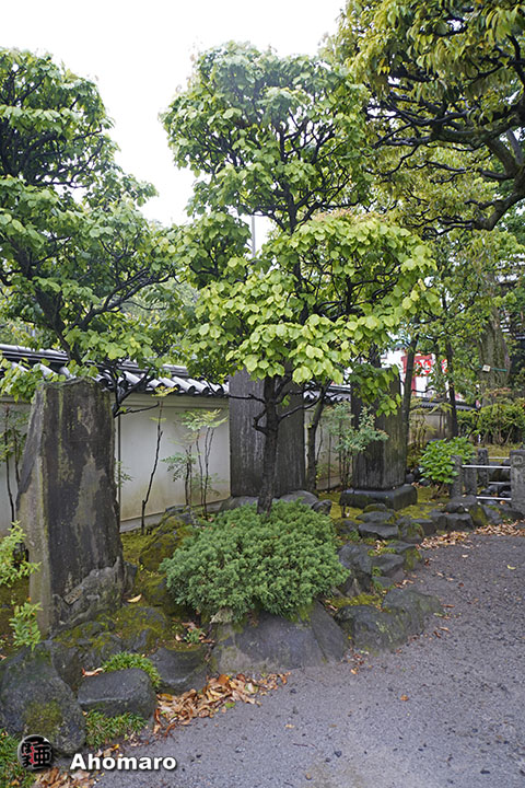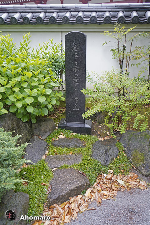 正岡子規句碑「観音で雨に逢ひけり花盛」
