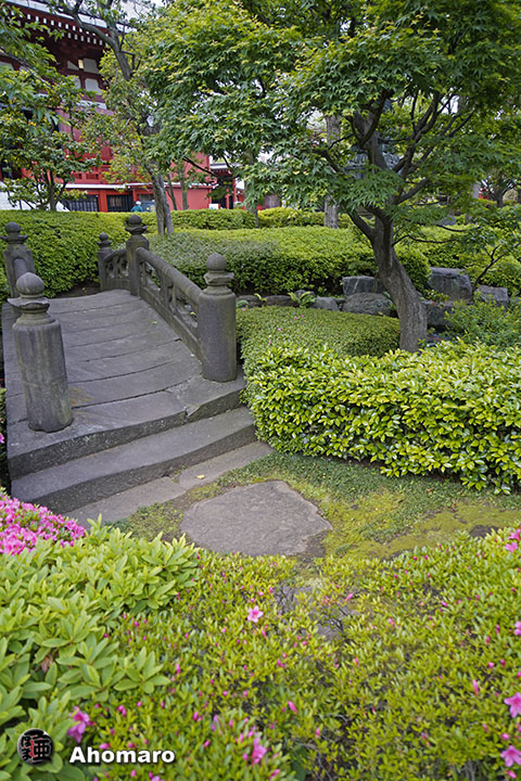 正岡子規句碑「観音で雨に逢ひけり花盛」