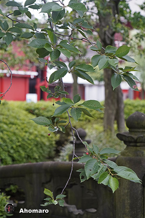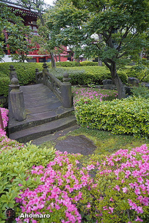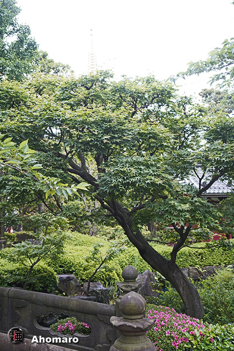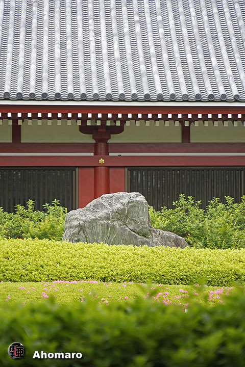 正岡子規句碑「観音で雨に逢ひけり花盛」