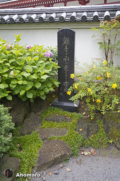 正岡子規句碑「観音で雨に逢ひけり花盛」