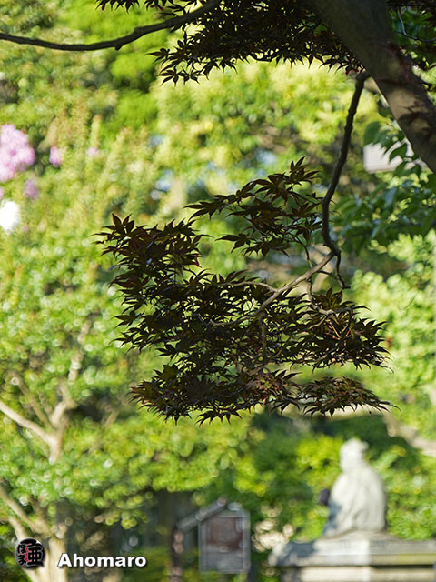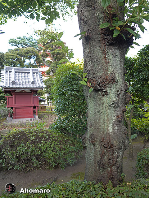 正岡子規句碑「観音で雨に逢ひけり花盛」