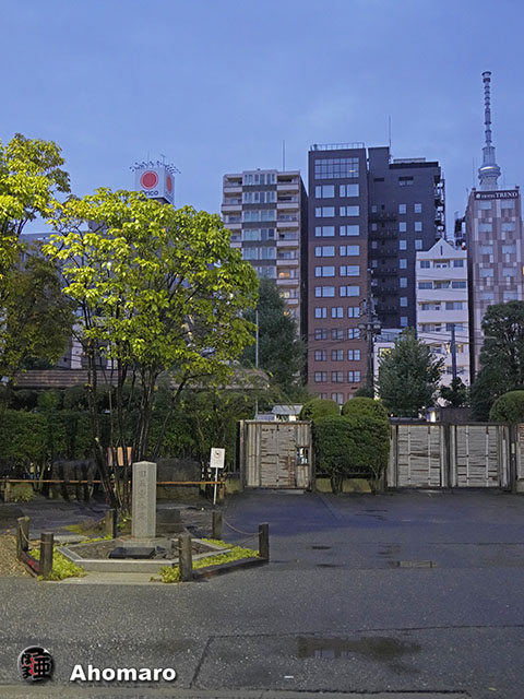 正岡子規句碑「観音で雨に逢ひけり花盛」
