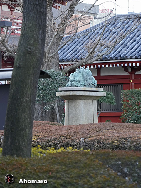 正岡子規句碑「観音で雨に逢ひけり花盛」