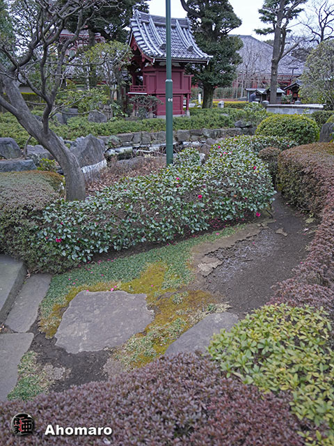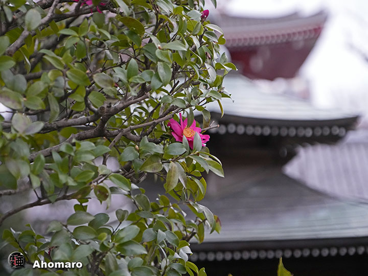 正岡子規句碑「観音で雨に逢ひけり花盛」