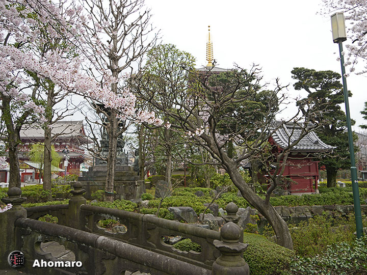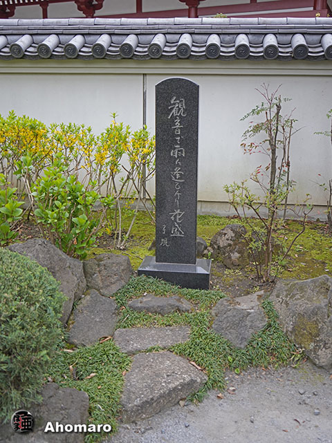 正岡子規句碑「観音で雨に逢ひけり花盛」