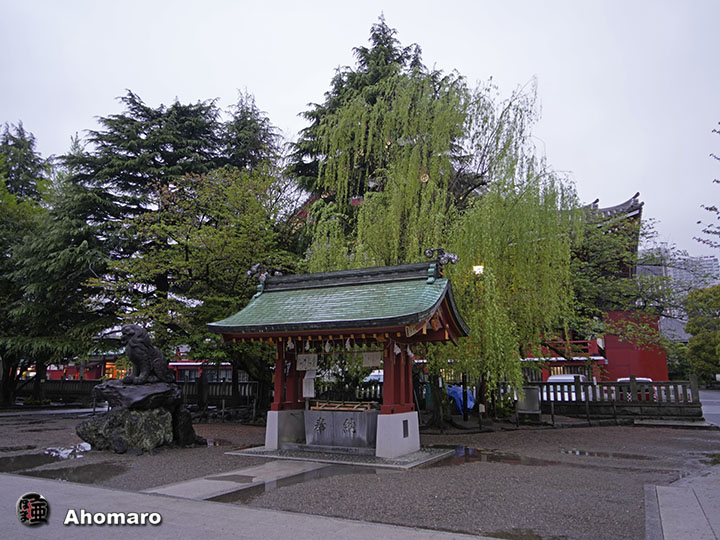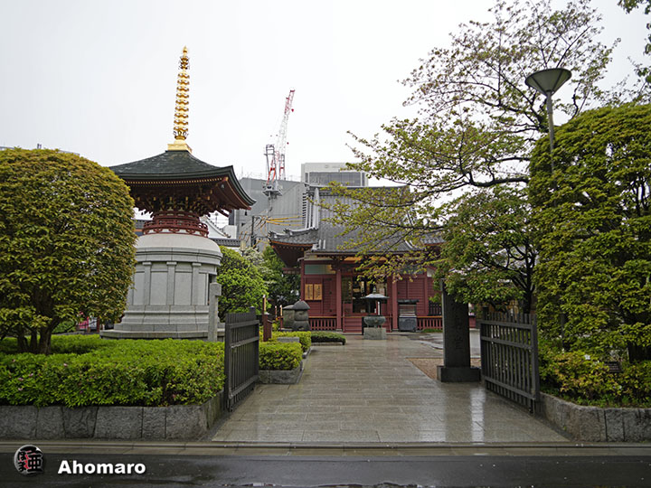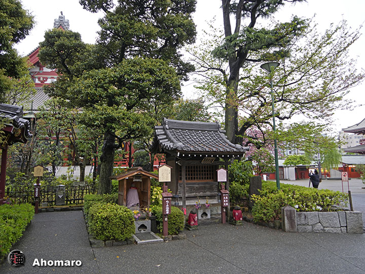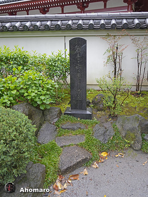 正岡子規句碑「観音で雨に逢ひけり花盛」