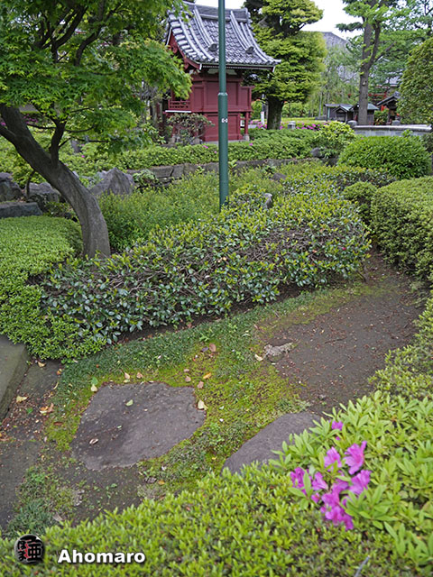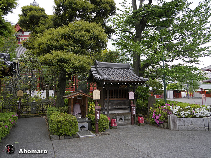 正岡子規句碑「観音で雨に逢ひけり花盛」