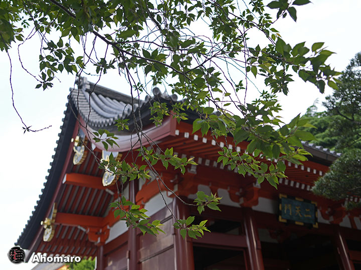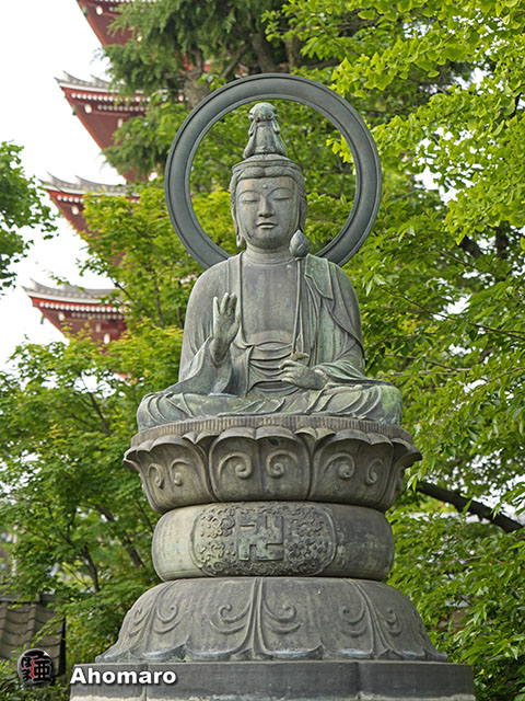 正岡子規句碑「観音で雨に逢ひけり花盛」