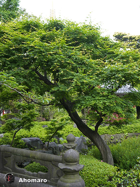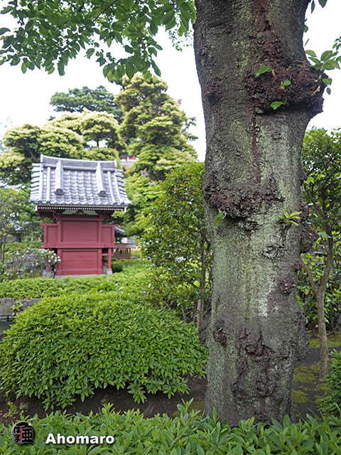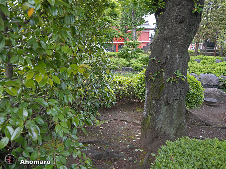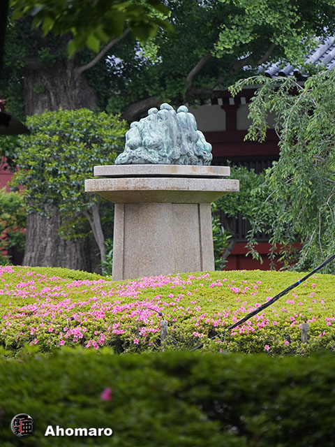正岡子規句碑「観音で雨に逢ひけり花盛」
