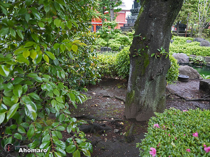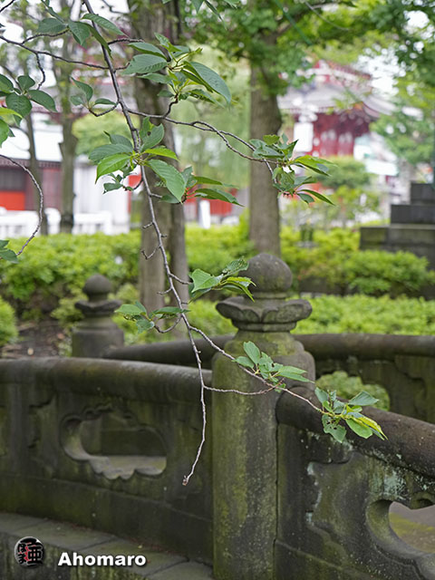 正岡子規句碑「観音で雨に逢ひけり花盛」