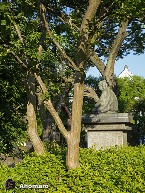 正岡子規句碑「観音で雨に逢ひけり花盛」