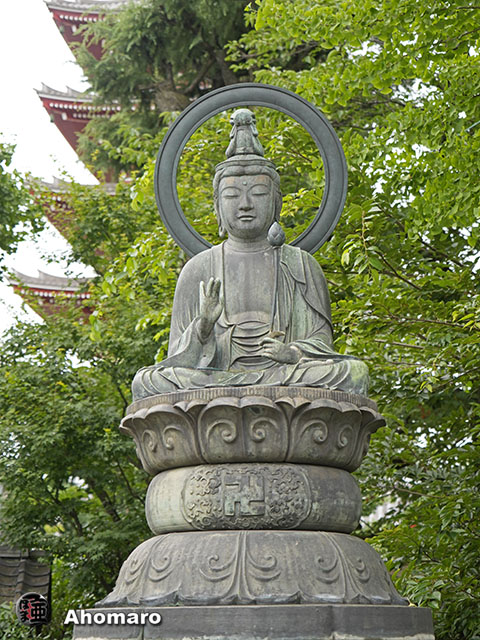 正岡子規句碑「観音で雨に逢ひけり花盛」
