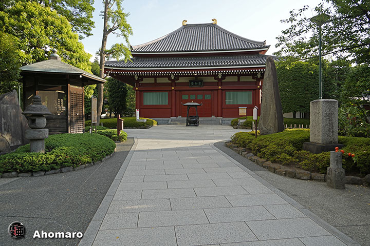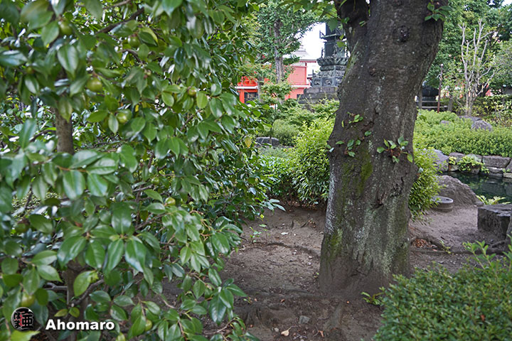 正岡子規句碑「観音で雨に逢ひけり花盛」
