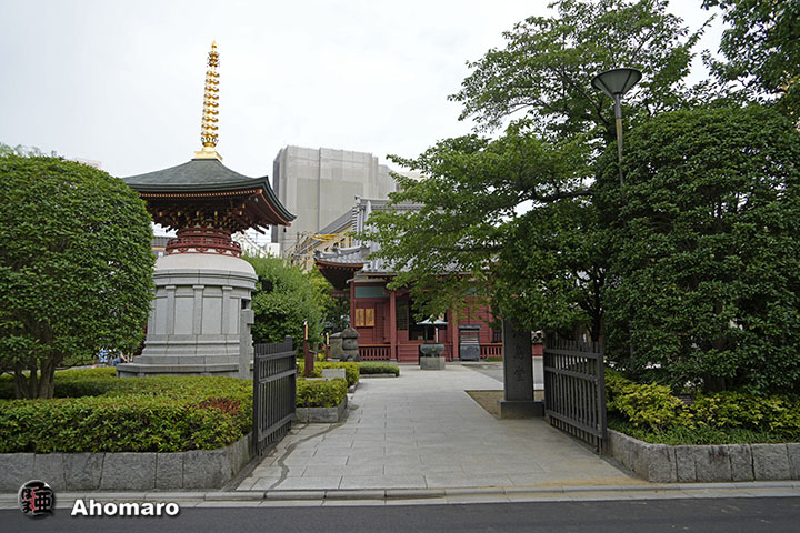 正岡子規句碑「観音で雨に逢ひけり花盛」