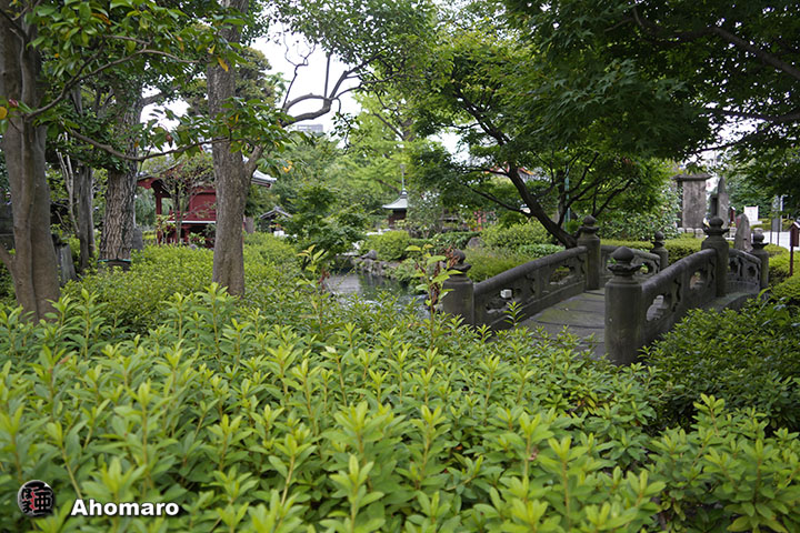 正岡子規句碑「観音で雨に逢ひけり花盛」
