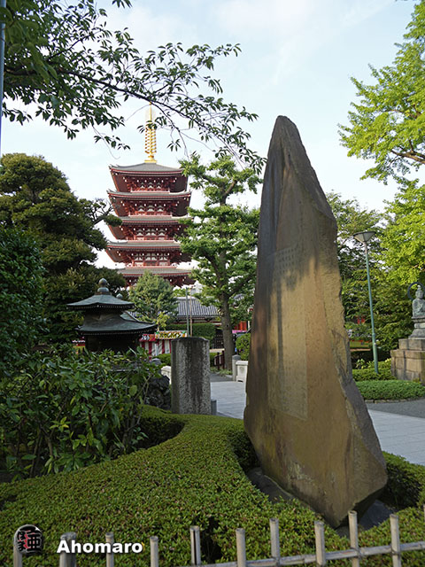 正岡子規句碑「観音で雨に逢ひけり花盛」
