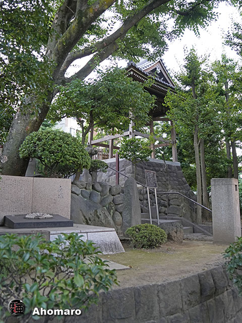 正岡子規句碑「観音で雨に逢ひけり花盛」