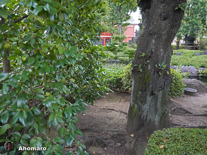 正岡子規句碑「観音で雨に逢ひけり花盛」