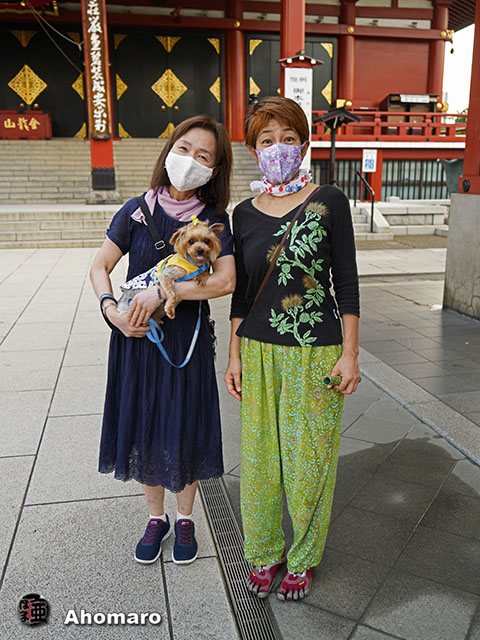 テンちゃんとダイちゃんが並ぶと、浅草寺は天台宗ですよ。