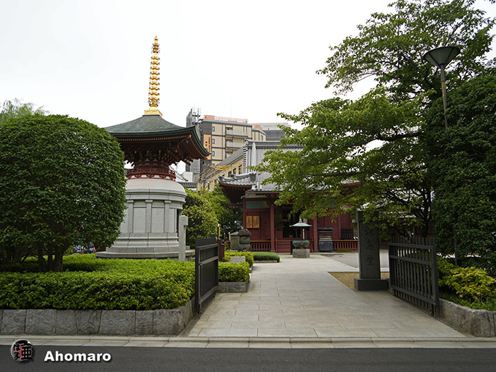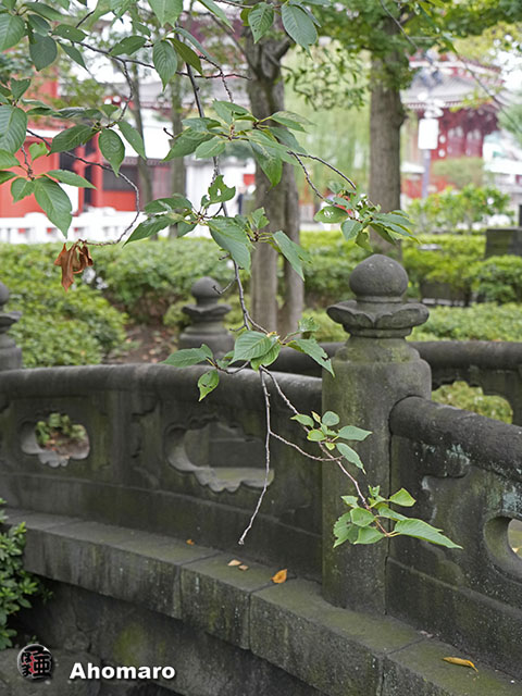正岡子規句碑「観音で雨に逢ひけり花盛」