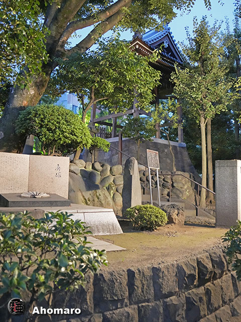 正岡子規句碑「観音で雨に逢ひけり花盛」