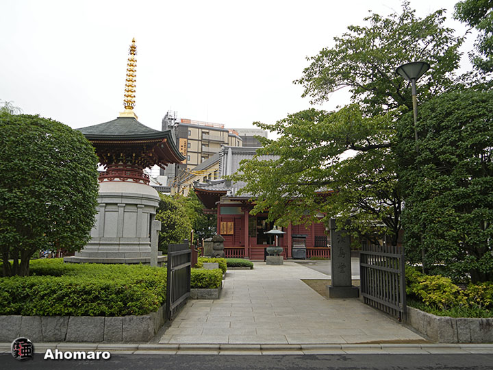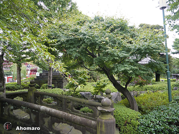 正岡子規句碑「観音で雨に逢ひけり花盛」