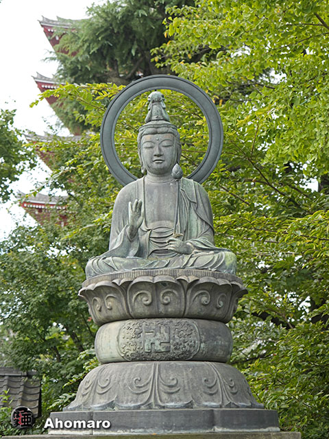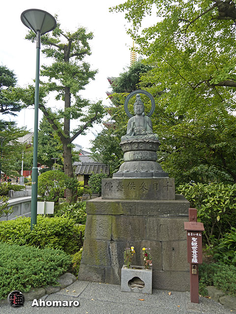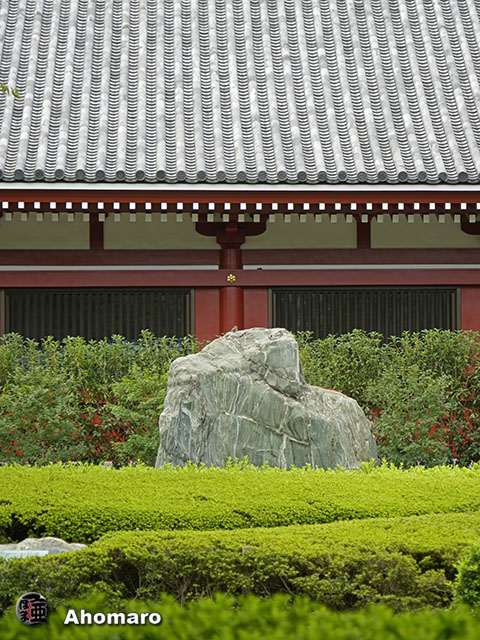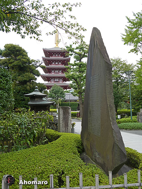 正岡子規句碑「観音で雨に逢ひけり花盛」